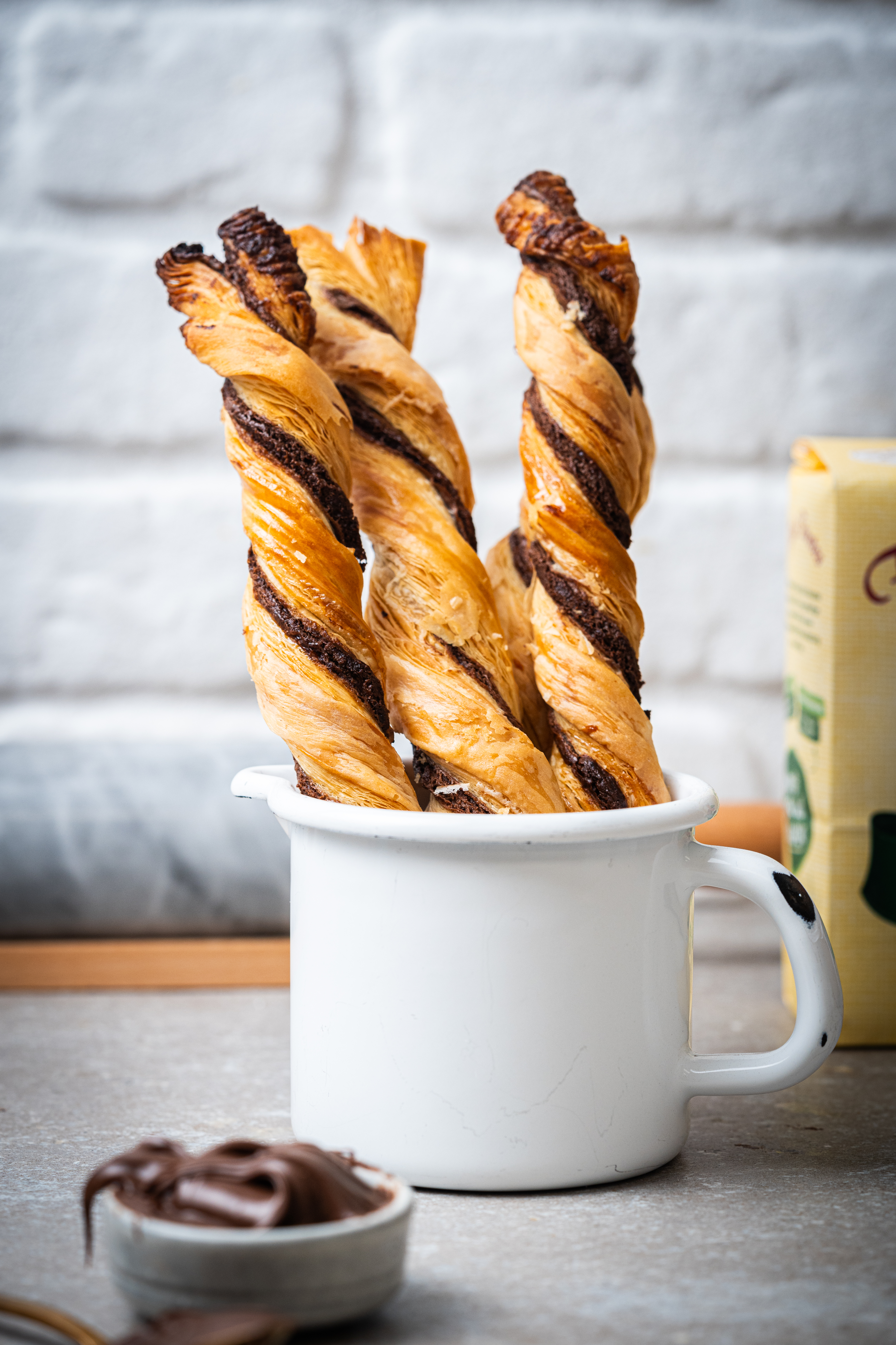 Die Streifen eindrehen und auf ein mit Backpapier ausgelegtes Backblech legen.