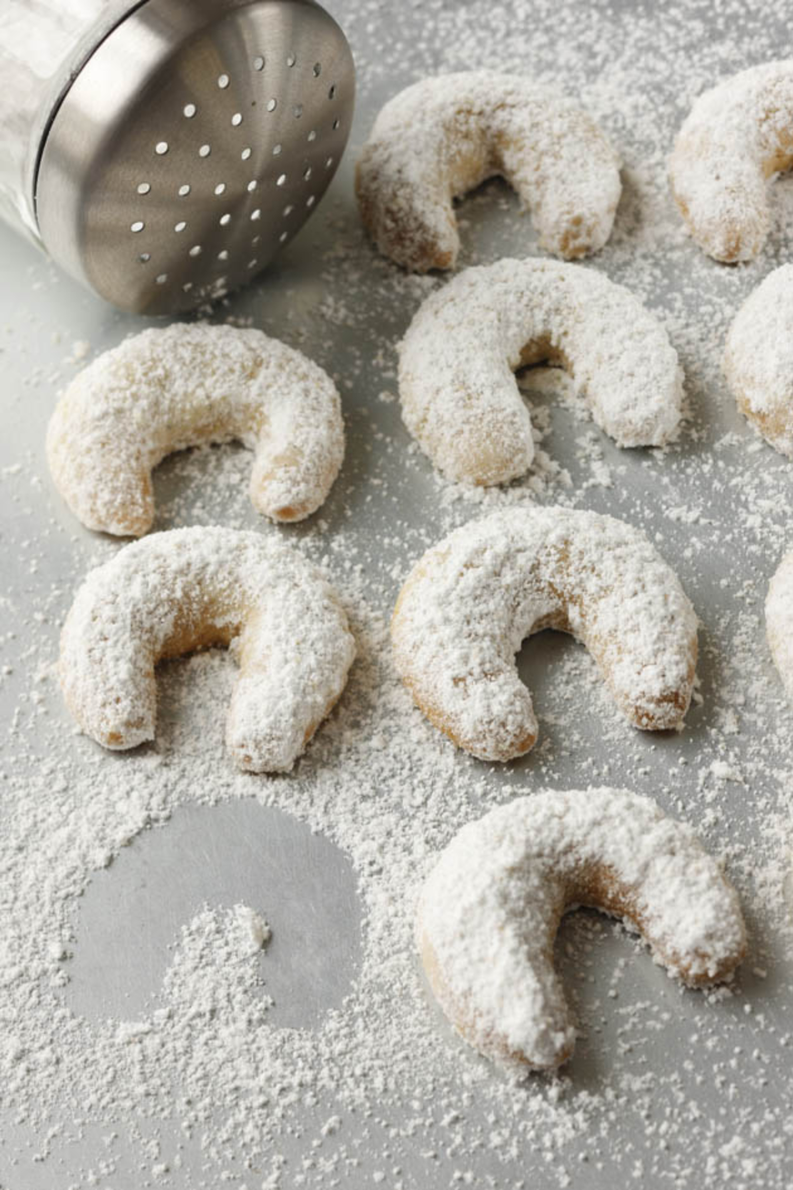 Staubzucker und Vanillezucker vermischen und die noch warmen Kipferln damit bestreuen.