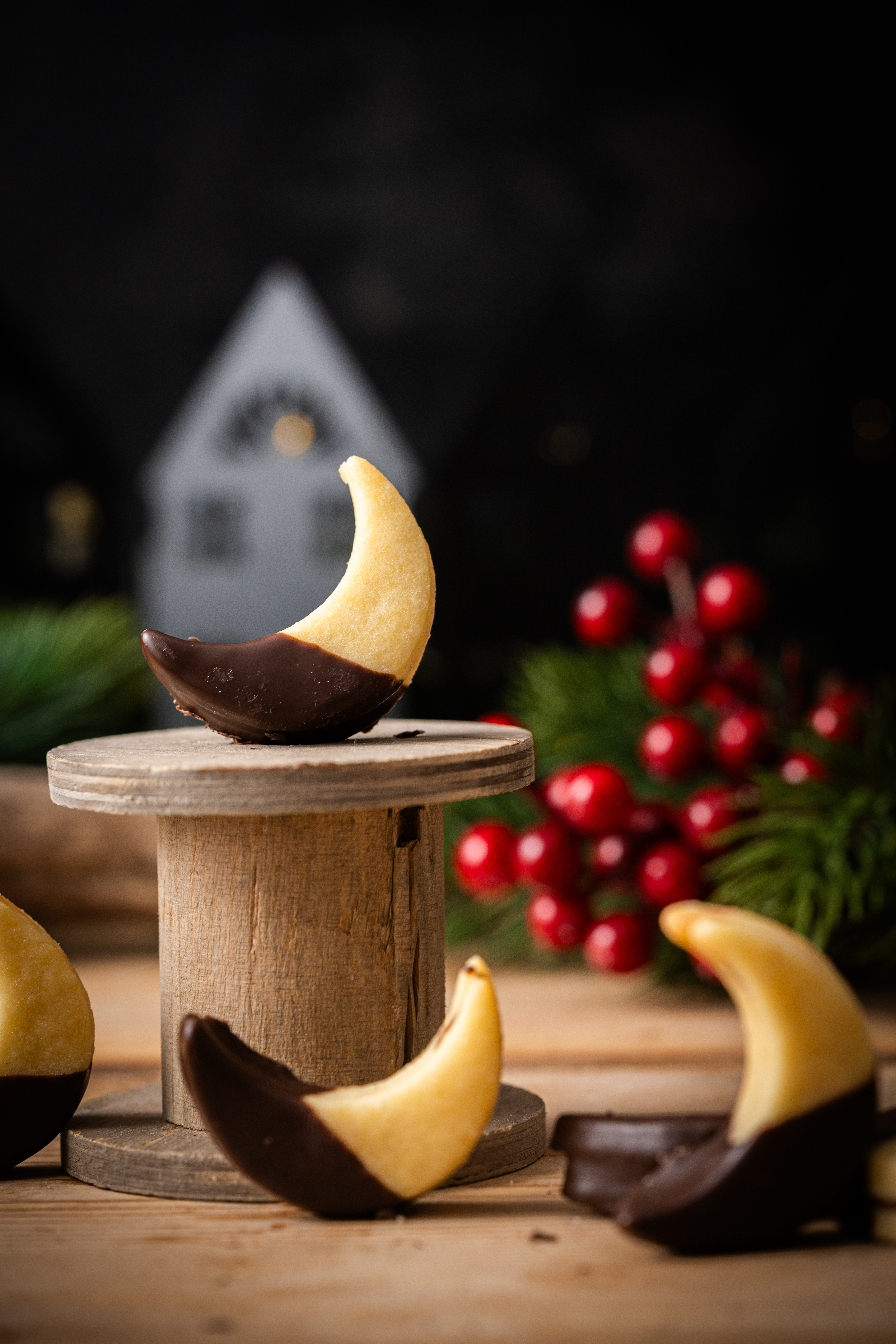 Anschließend ausrollen und mit Mondausstechern Kekse ausstechen.