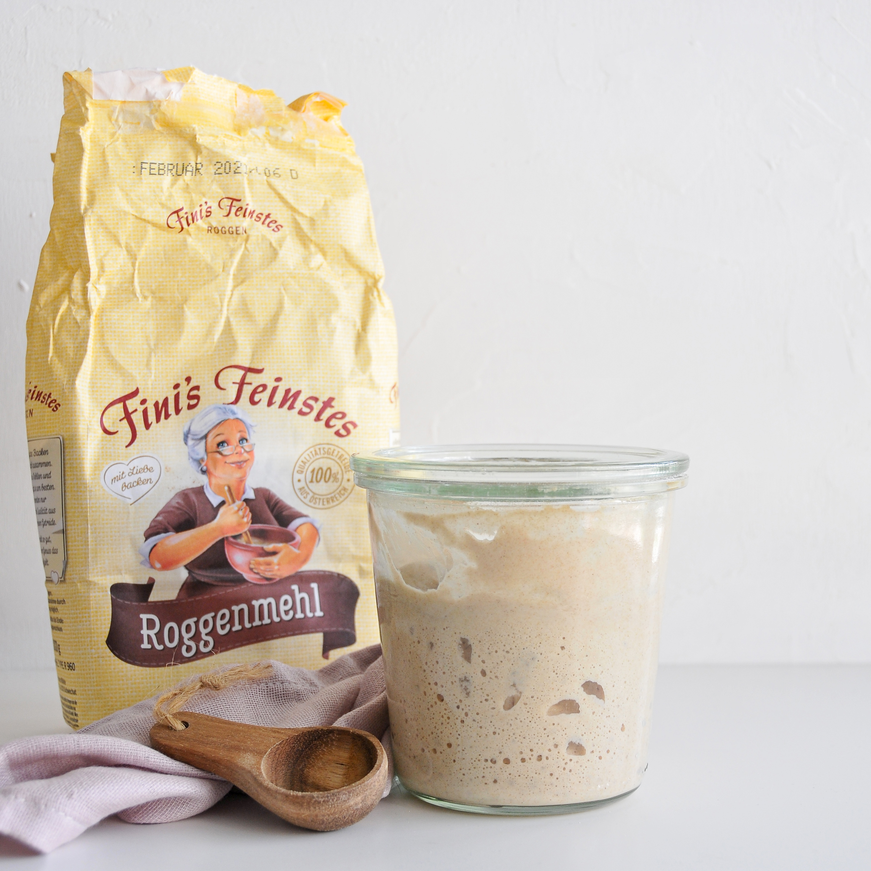 Du kannst deinen Sauerteig auch mit Dinkel- oder Weizenmehl ansetzen. Wichtig ist, bei einer Mehlsorte zu bleiben.