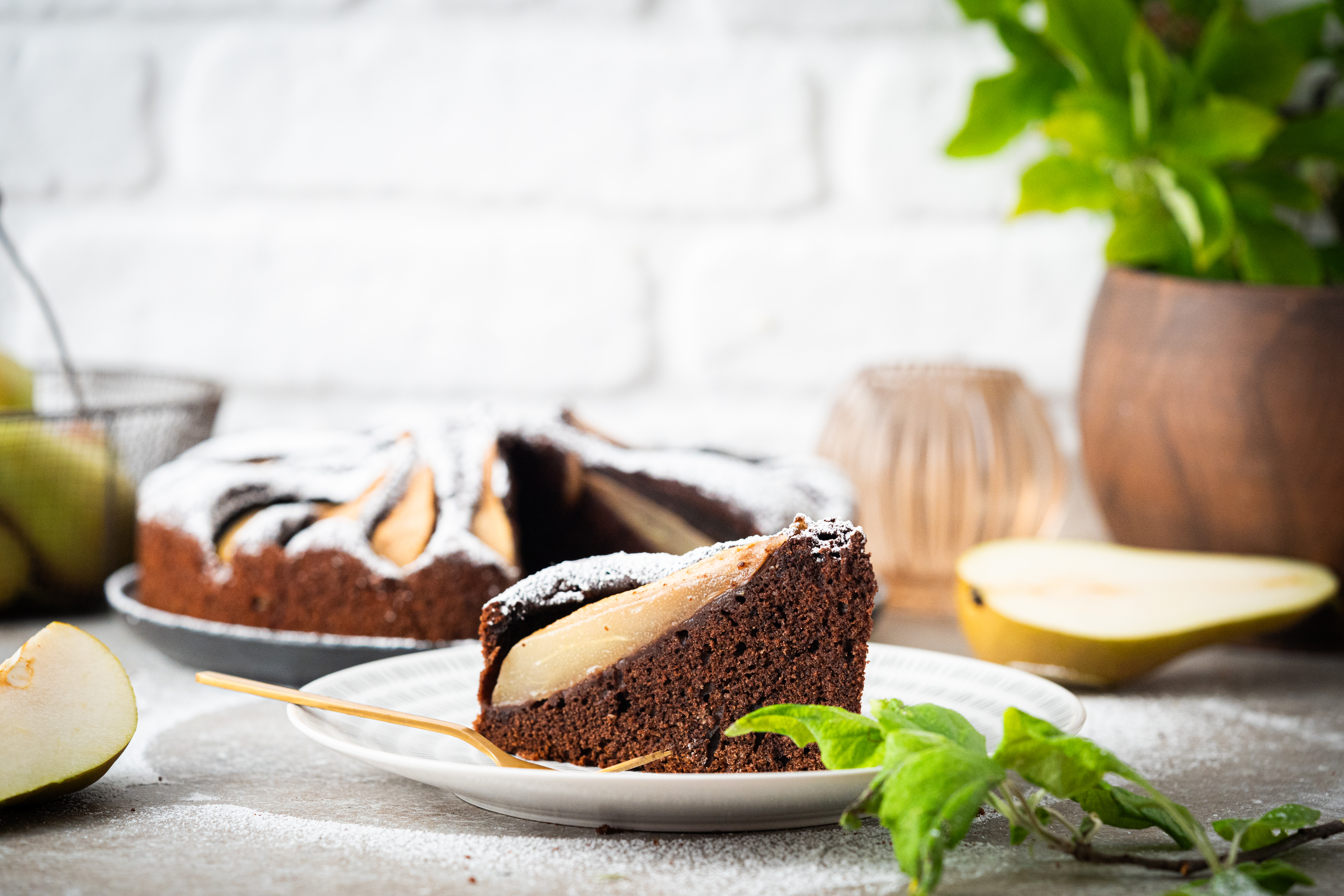 Nun den Kuchen mit den Birnen belegen und für 50 Minuten backen.